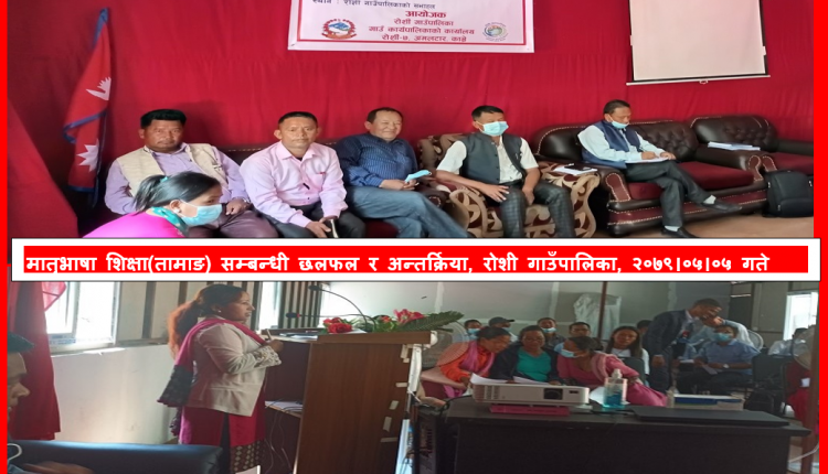 रोशी गाउँपालिकाको २५  विद्यालयहरूमा कक्षा-२ सम्म तामाङ भाषा विषय पठनपाठन